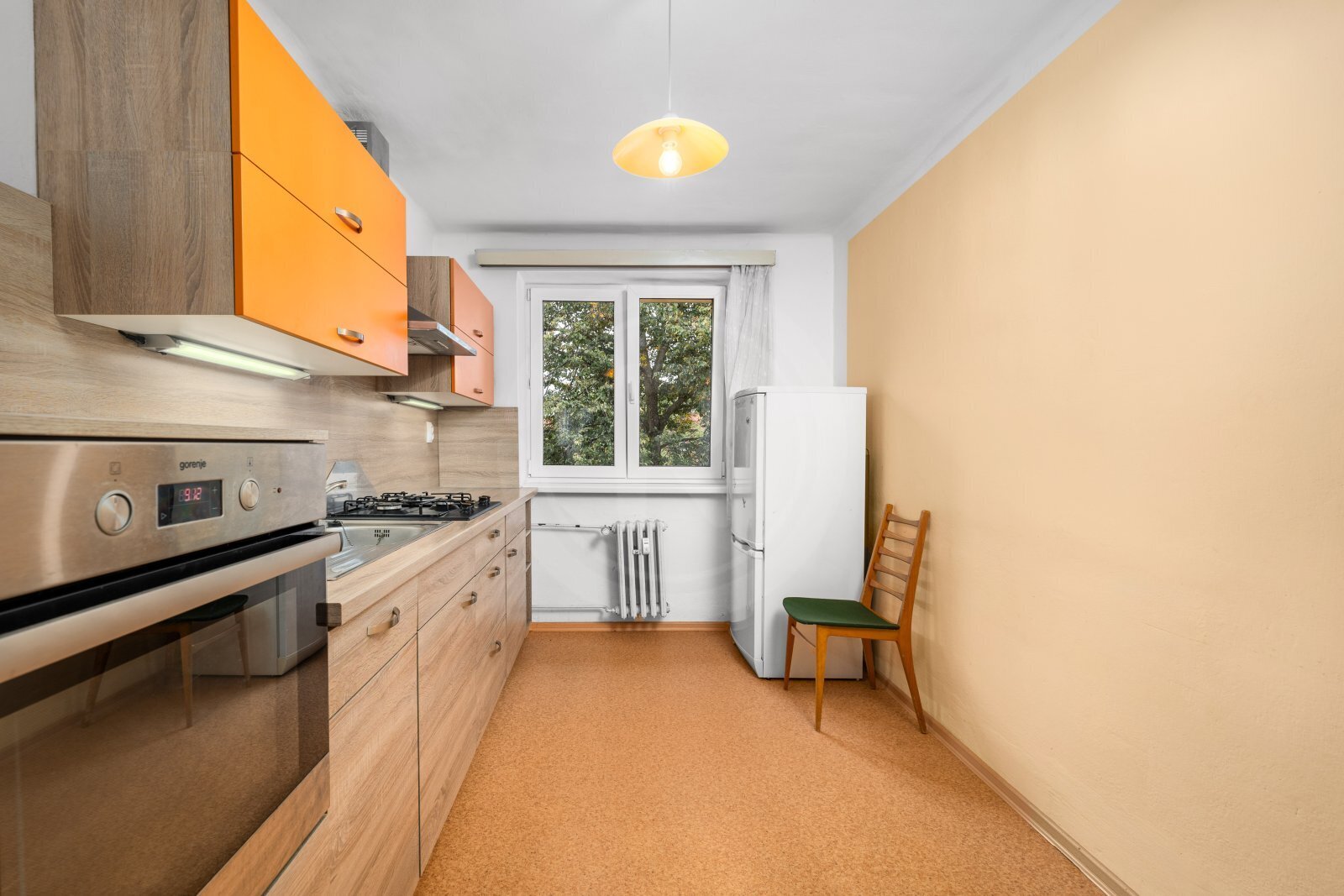 Dispozice bytu zahrnuje prostornou kuchyni s moderní kuchyňskou linkou, obývací pokoj, ložnici, koupelnu s vanou koutem a samostatné WC. Byt je ve stávajícím původním stavu, do nějž byla instalována nová kuchyňská linka s vestavěnými spotřebiči (elektrická trouba, plynová varná deska, digestoř, lednička a myčka). V obou pokojích jsou položené kvalitní dubové parkety. Veškerá média jsou samostatně měřitelná, vytápění je zajištěno dálkovým rozvodem a ohřev vody bojlerem. Modernizovaný bytový dům prošel kompletní revitalizací, zahrnující novou střechu, zateplení fasády a instalaci protihlukových plastových oken s dvojskly. Dům disponuje společnými prostorami včetně kolárny a sušárny, a nízké měsíční náklady na bydlení představují další výhodu. K bytu náleží dva samostatné sklepy umístěné v suterénu domu. Lokalita nabízí veškerou občanskou vybavenost, včetně MHD, obchodů, lékaře, školy, školky, pošty a dalších služeb. BENB - C