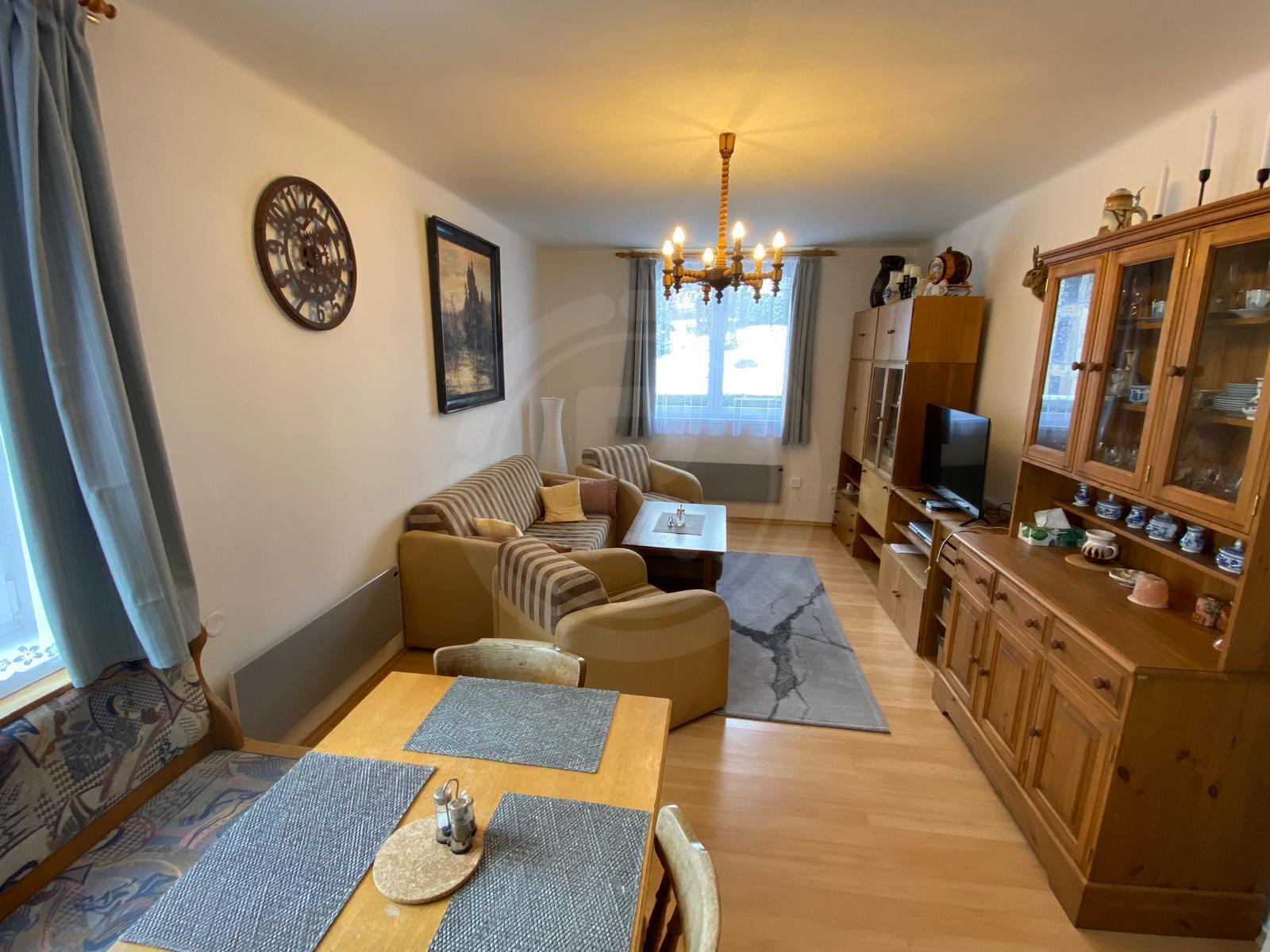 bytu dále náleží dva prostorné sklepy o ploše 5,72 m2 a 2,75 m2 umístěné v přízemí domu. Dům prošel celkovou revitalizací ( střecha, fasáda, zateplení, plastová okna, vstupní dveře, společné prostory atd.). Dům se nachází v centru obce, kde naleznete základní občanskou vybavenost. Lyžařský areál se nachází 100 m od domu. V dosahu domu, který se nachází v centru obce se nachází základní občanská vybavenost. Horská obec Kvilda leží v okrese Prachatice v Jihočeském kraji, vzdálená cca. 16 km od města Vimperk. Jedná se o vyhledávané středisko zimních sportů i letní turistiky. Nachází se uprostřed Kvildských plání, přibližně 5 km od pramenů Teplé Vltavy. Kvilda je nejvýše položenou obcí v celé České republice. Okolí nabízí spousty běžeckých tratí a přímo v obci lyžařský areál. Vhodné jako investice. Doporučujeme osobní prohlídku.
